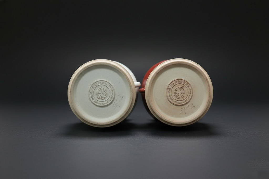 白釉款晶莹剔透、温润如脂,红釉款色泽沉稳、光泽深邃。两者皆以高温釉烧工艺完成,釉层厚薄均匀,色感纯正饱满。白若玉、红如霞,象征“和而不同”的东方哲学精神,在光影间流露出层次分明的质感之美。