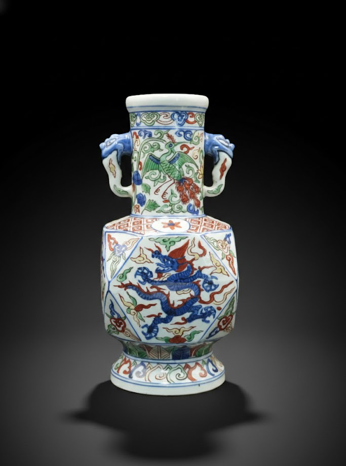 方圆并济,色耀嘉靖——青花五彩象耳多方瓶
