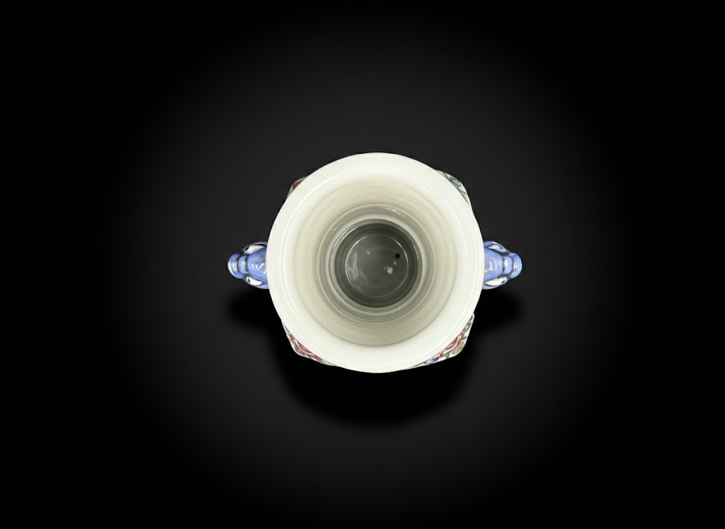这件青花五彩象耳多方瓶兼具宫廷气度与工艺之美,是明代中期彩瓷艺术的重要代表。其造型挺拔,纹饰华贵,既可赏其形,又可究其艺。