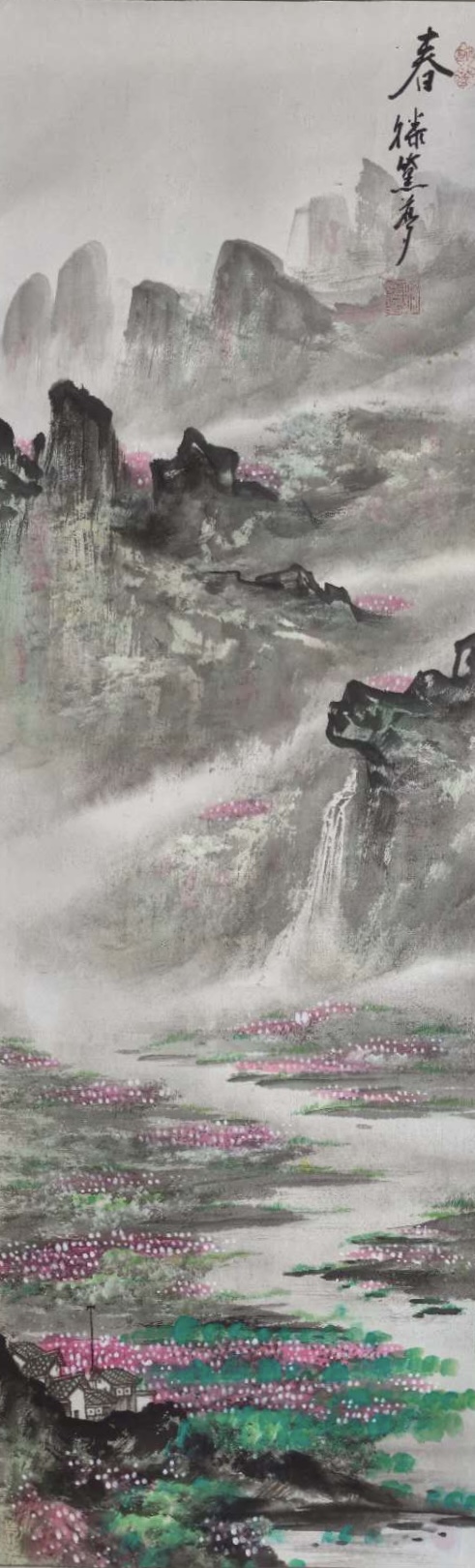 滕士琪(滕黛梦),1936年生,国家一级美术师。其作品以清逸典雅、笔致精微著称,兼具文人气韵与时代精神。她以女性特有的细腻笔感与审美洞察,赋予山水画柔中带韧的生命张力。
