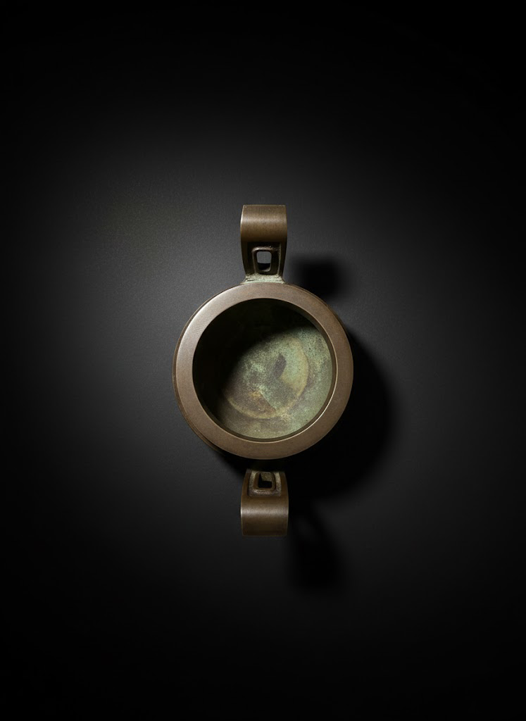 此炉器型沉稳而不失灵动,线条洗练,展现出明清宣德炉体系中经典的戟耳造型。铜质缜密,皮壳色泽深沉幽古,经年岁月打磨,呈现出温润的“藏经色”光泽。整体比例匀称,气韵古雅,散发出浓厚的文人书房气息。