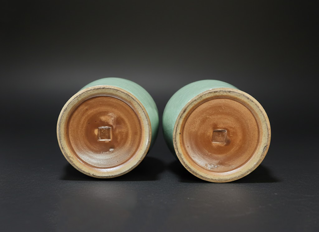 这对豆青釉观音瓶,通高约50.5cm,口径15.4cm,底径11cm,器型修长挺拔,比例匀称,为清代瓷器中极具代表性的典雅之作。观音瓶又称“观音尊”,因其线条柔美、姿态端庄,如观音菩萨亭亭玉立的倩影而得名。