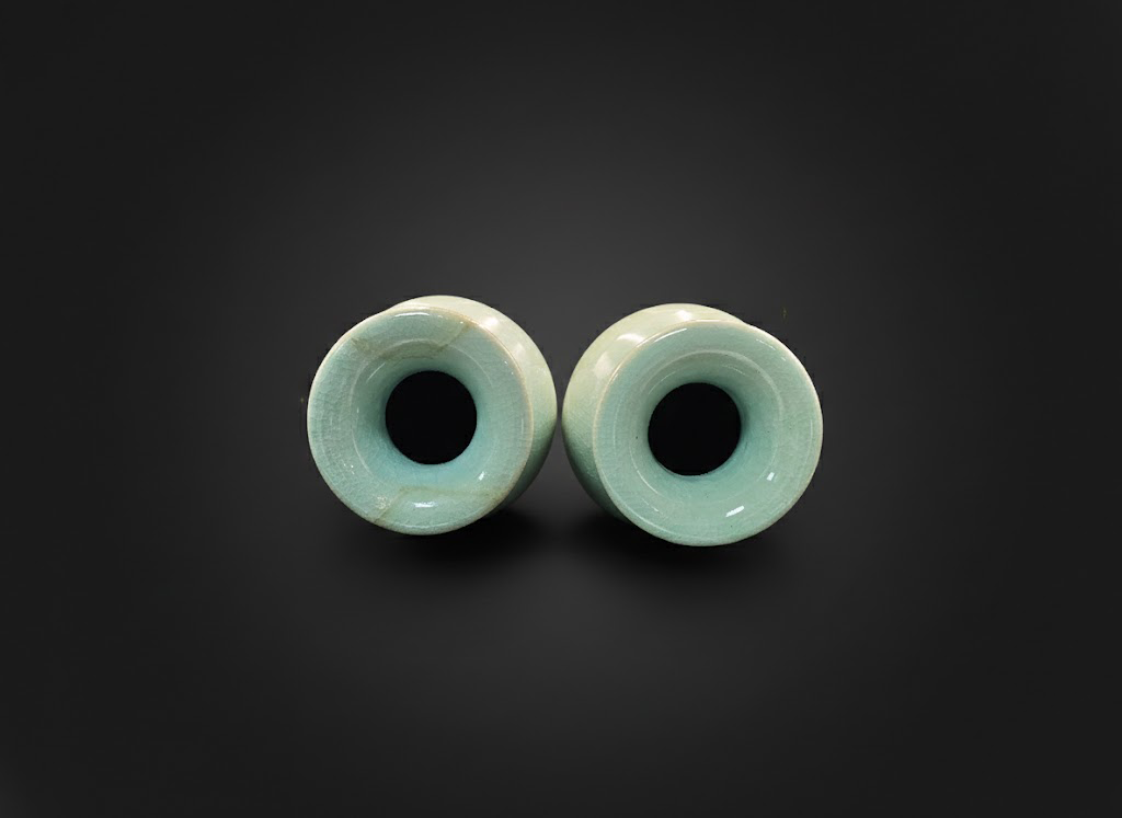 瓶体撇口溜肩,收腹圈足,整体端庄大方。成对陈设时相映成趣,线条挺拔中见婉约,展现出一种宁静而高雅的观照之美。