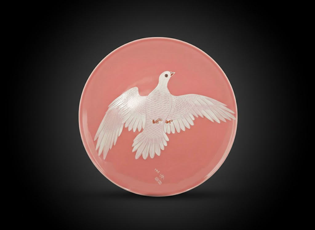 粉釉雅韵·匠心之作——王步粉釉堆白和平鸽圆盘
