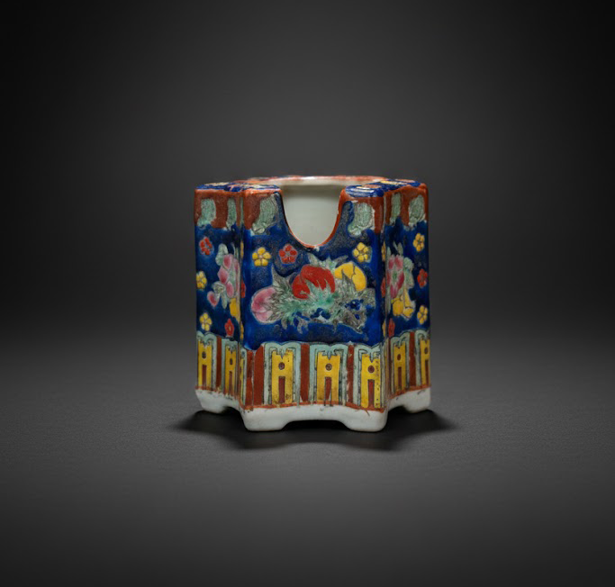 华彩流芳:晚清五彩六角星形笔筒