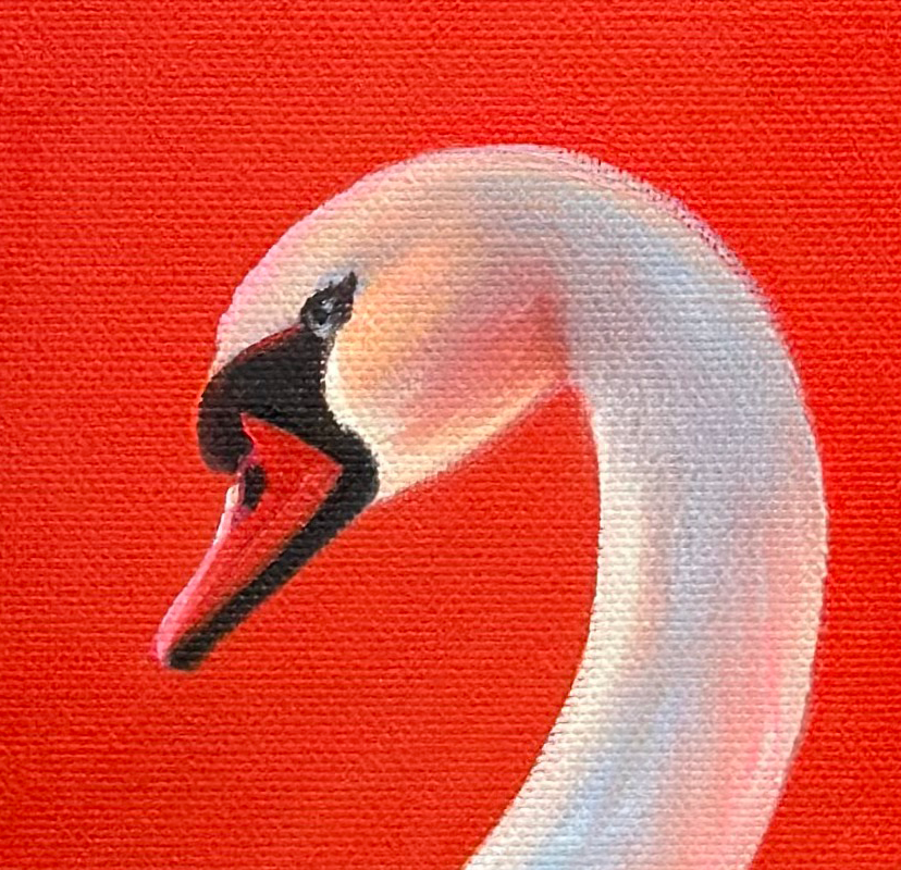 在有限的画幅中,每一根羽毛、每一处水波都被刻画得细腻入微。羽毛的叠层质感与水面细微的涟漪相互呼应,构成了一个既真实又超然的意象空间。天鹅如湖中仙子般静伫,姿态优雅、气韵生动。光影在羽翼间的流转,使画面呈现出时间被凝固的美感。