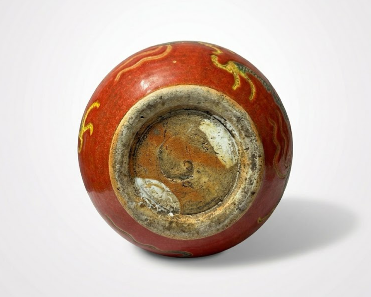 赤釉凝华:元至正红釉龙纹双耳瓶赏析