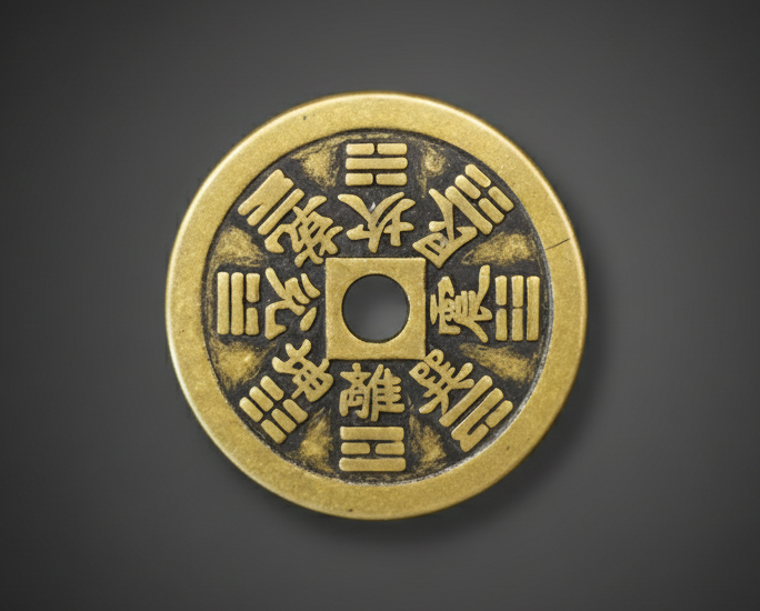 这些卦象分别代表天地自然八种基本力量,寓意阴阳调和、万物循理。古人认为八卦具有镇宅、化煞之功,因此常被铸于钱面,用以借天地之势、定阴阳之气。