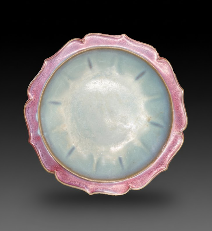 此盘构思精巧、釉色华美、胎质细腻,为宋代钧窑中窑变釉的代表之作。