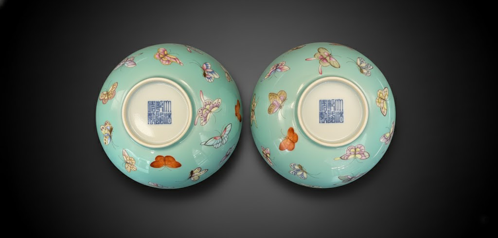 这对清乾隆 松石绿粉彩蝶纹碗兼具皇家气度与匠心之美,绿釉鲜润、彩绘精微,既富审美意趣,又蕴吉祥寓意。无论从造型、釉色、绘工还是款识来看,皆为乾隆官窑之典范之作。