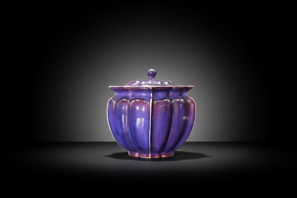 在中国宋代五大名窑中,钧窑以“入窑一色,出窑万彩”的釉变奇迹闻名于世。这件钧窑紫釉六棱海棠花口罐(“蔡”字款),正是其中的经典之作。造型端庄、釉色华美,凝结着宋代宫廷用器的典雅风韵。