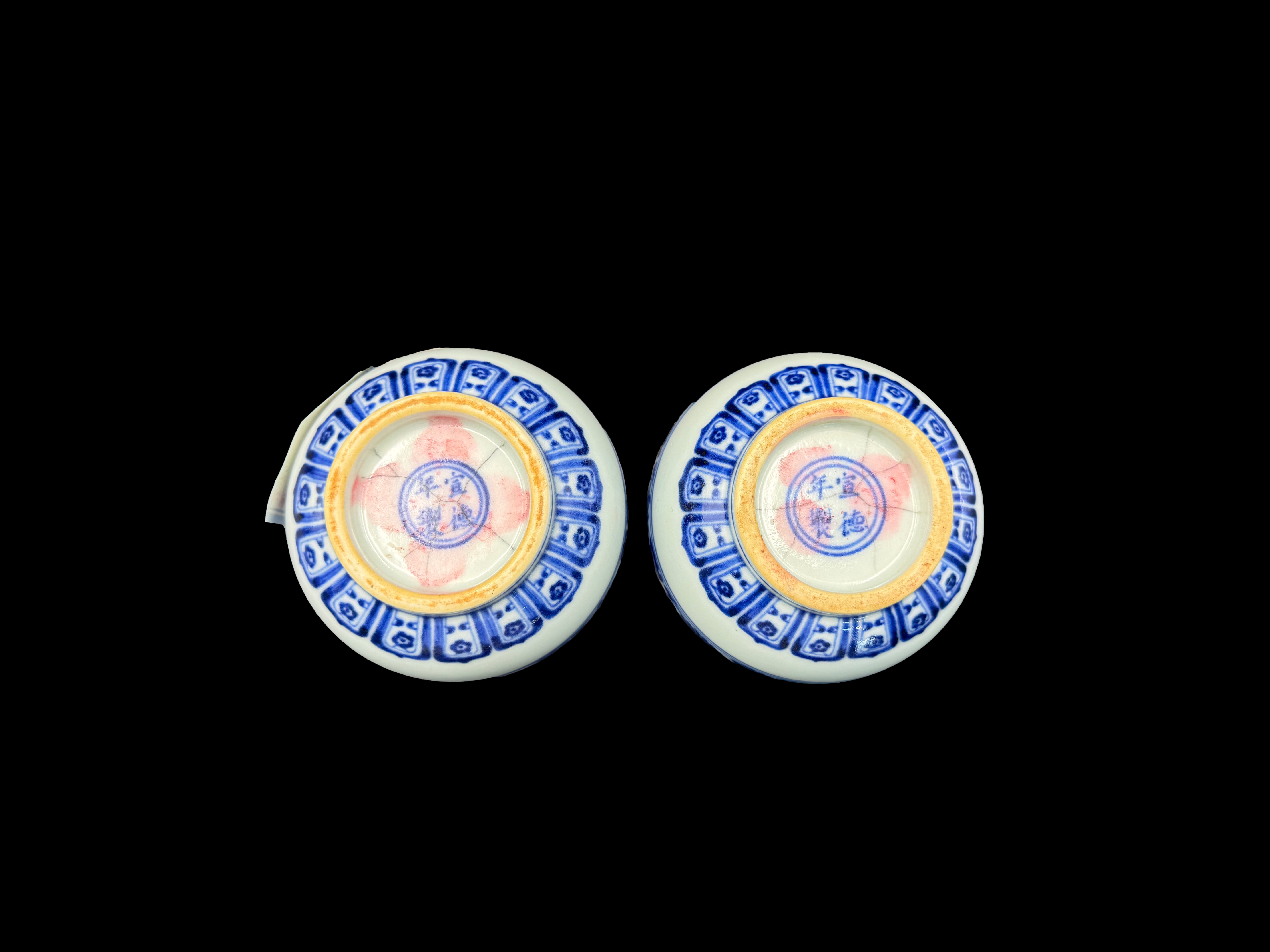 这对扣碗造型小巧可爱,设计精巧,既可用于盛放珍馐,亦可作为雅致的茶器使用。它们集实用与审美于一体,是传统瓷器工艺的典范之作。