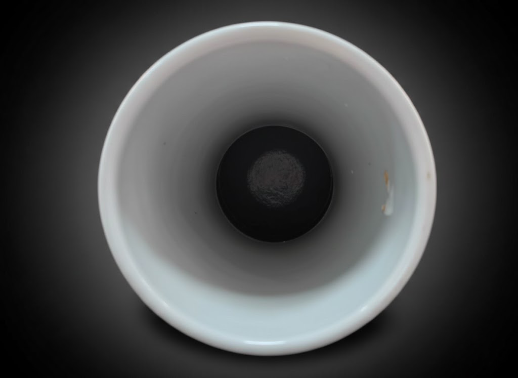 瓶口直径12厘米,圆润规整,颈部挺拔修长,内壁施以莹润的白釉。胎质坚致细腻,边缘线条流畅有力,显现出厚重稳健的器物特质。其修胎与施釉工艺之精湛,体现了清代成熟的制瓷水准。