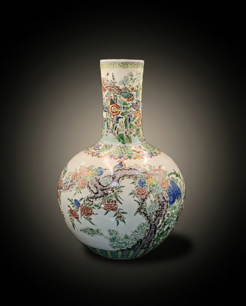 清代五彩花鸟纹天球瓶:风华的瓷艺工艺