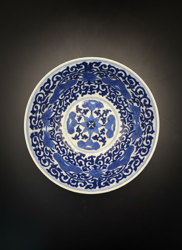 碗内壁饰青花缠枝花卉纹,线条细劲流畅,构图规整严谨。内外装饰形成鲜明对比——内壁青花清幽淡雅,外壁粉彩绚烂明丽,二者交融呼应,使整器在静与动、雅与华之间取得完美平衡。