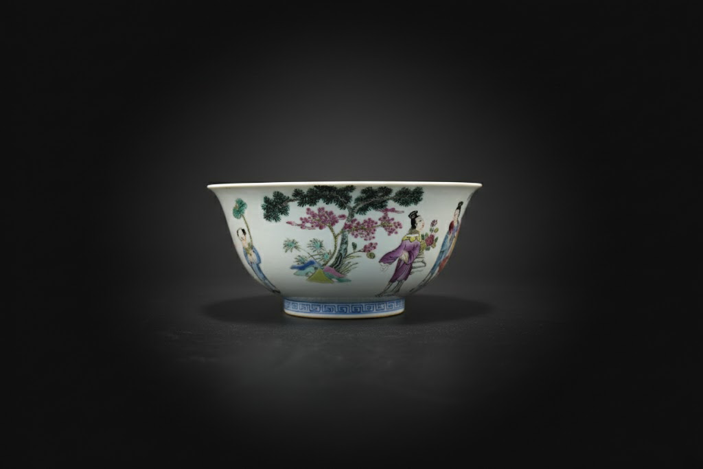 此碗的艺术价值在于“内青花、外粉彩”的独特结构与绘画对比,既承袭康雍乾时期的传统风格,又融入晚清粉彩的柔丽气息。其制作工艺、彩料调和与画意构思皆臻至成熟境界,可谓宣统时期官窑粉彩瓷的代表之作。