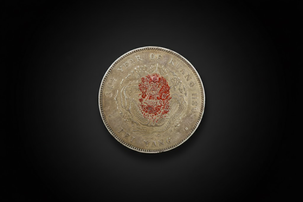 中央雕饰一条神态威严的蟠龙,腾跃盘旋,龙鳞细密,线条刚劲。四周环绕英文“34TH YEAR OF KUANG HSU”与“PEI YANG”,刻工深峻,边齿整齐。币面留有淡淡红印痕迹,岁月沉淀下的痕迹更添历史的真实感与收藏魅力。