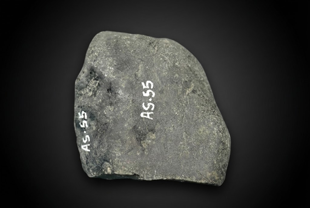 背面完整保留了自然风化形成的皮壳结构,质地坚实,表面纹理细密可辨,并附有清晰的收藏编号,显示出料子来源有序、保存状态良好,未经过多人工干预,原始感十足。