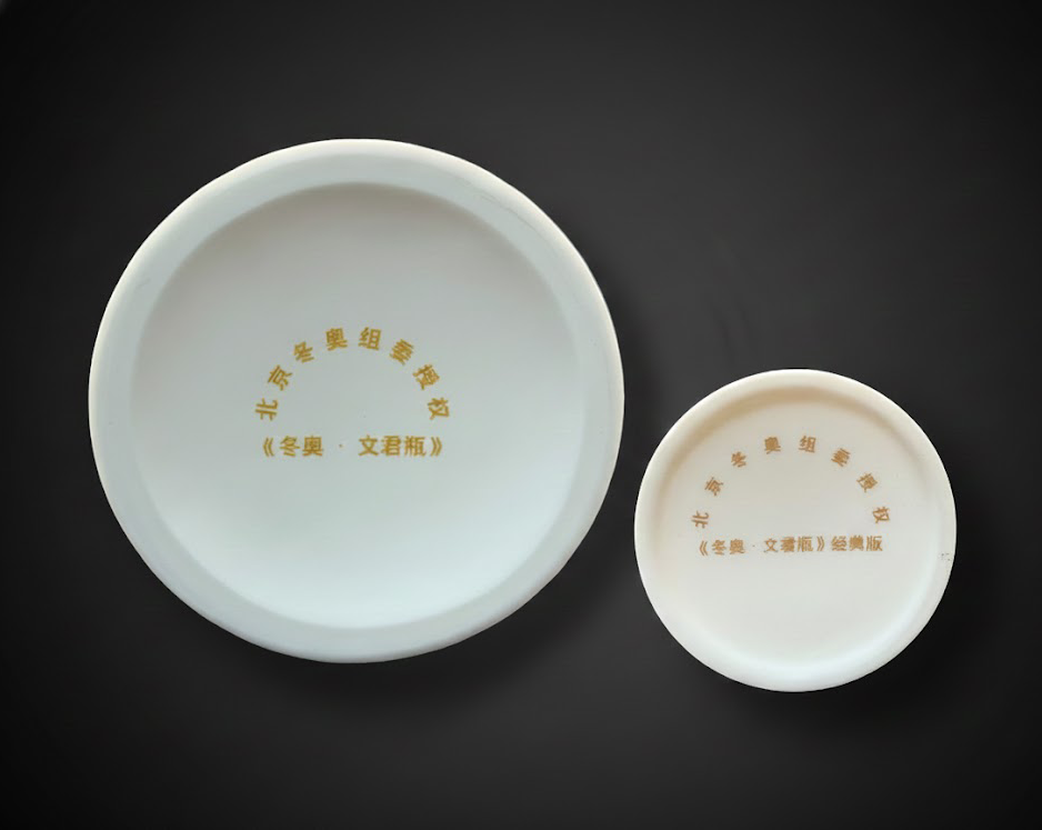 瓶底刻有“北京冬奥组委授权”及作品名称的金色印章,彰显其作为冬奥官方特许文创产品的权威身份,同时也是值得典藏的时代纪念。