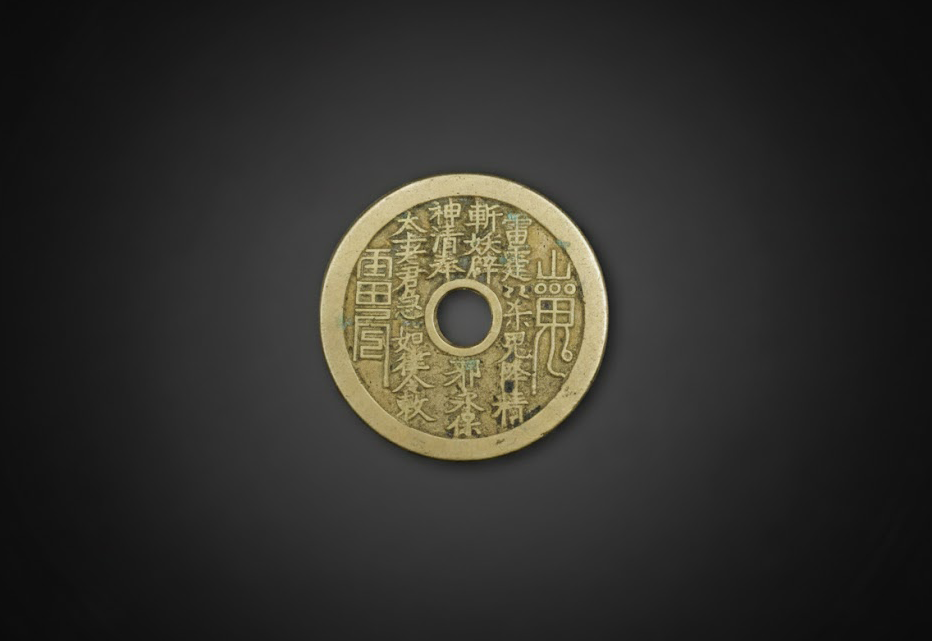 在中国的钱币文化中,有一种不作流通使用,而是专门用于佩戴、赏玩或镇宅的特殊钱币,被称为“花钱”。而在众多类型的花钱中,清代山鬼八卦花钱尤为独特,堪称清代民俗信仰与道教文化交融的精华所在。此枚花钱重24.81g,为黄铜质地,包浆自然温润,文字深峻挺拔。