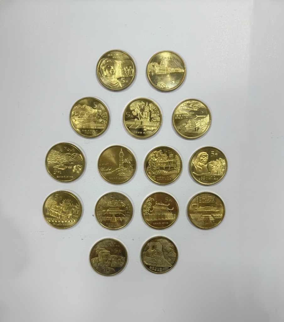 纪念币正面图案精心选取了包括故宫、长城、秦始皇陵、泰山、黄山以及台湾日月潭在内的十五处世界文化与自然遗产。浮雕工艺层次分明,细节处理精致入微,让这些代表中华文明的地标在掌心之间再次焕发光彩。它不仅重现了山河壮丽的景象,更传递出文化自信与历史厚度。