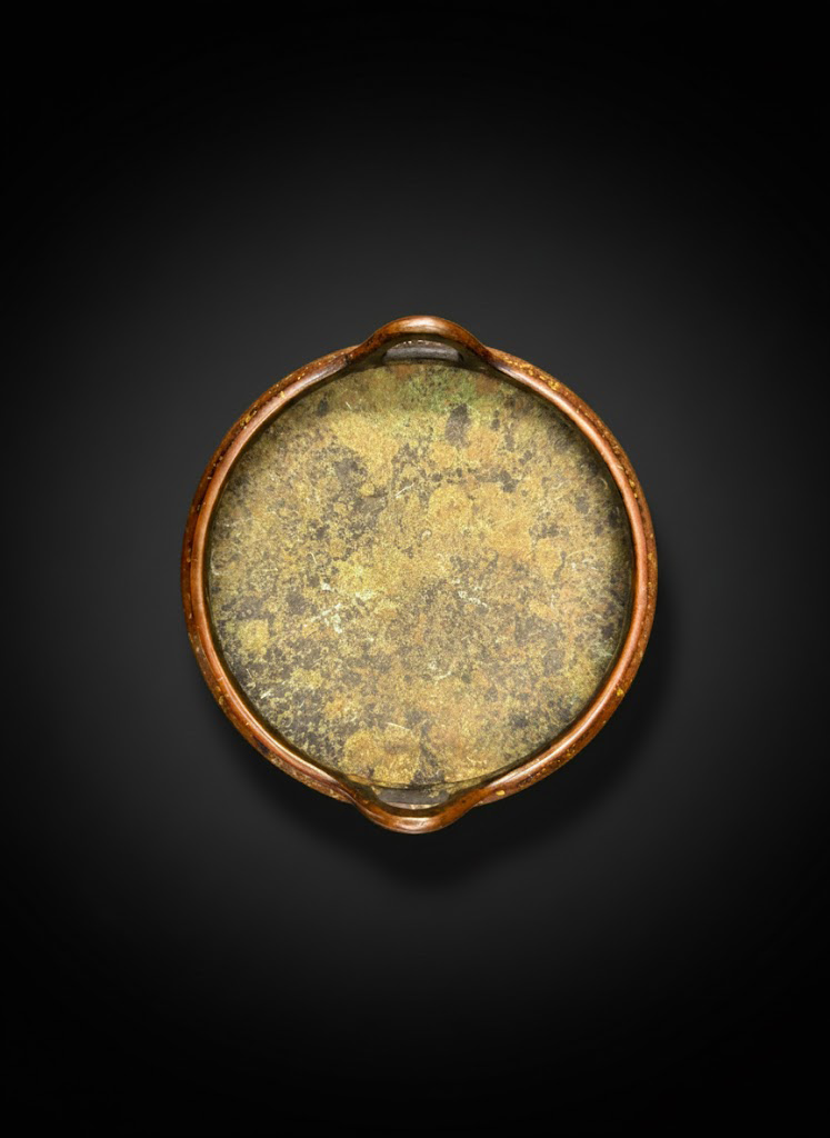 从俯视角度观之,炉口圆润开阔且唇边厚实,双桥耳跨筑于沿上,比例匀称,展现出空间的对称之美与炉膛深邃的岁月痕迹。