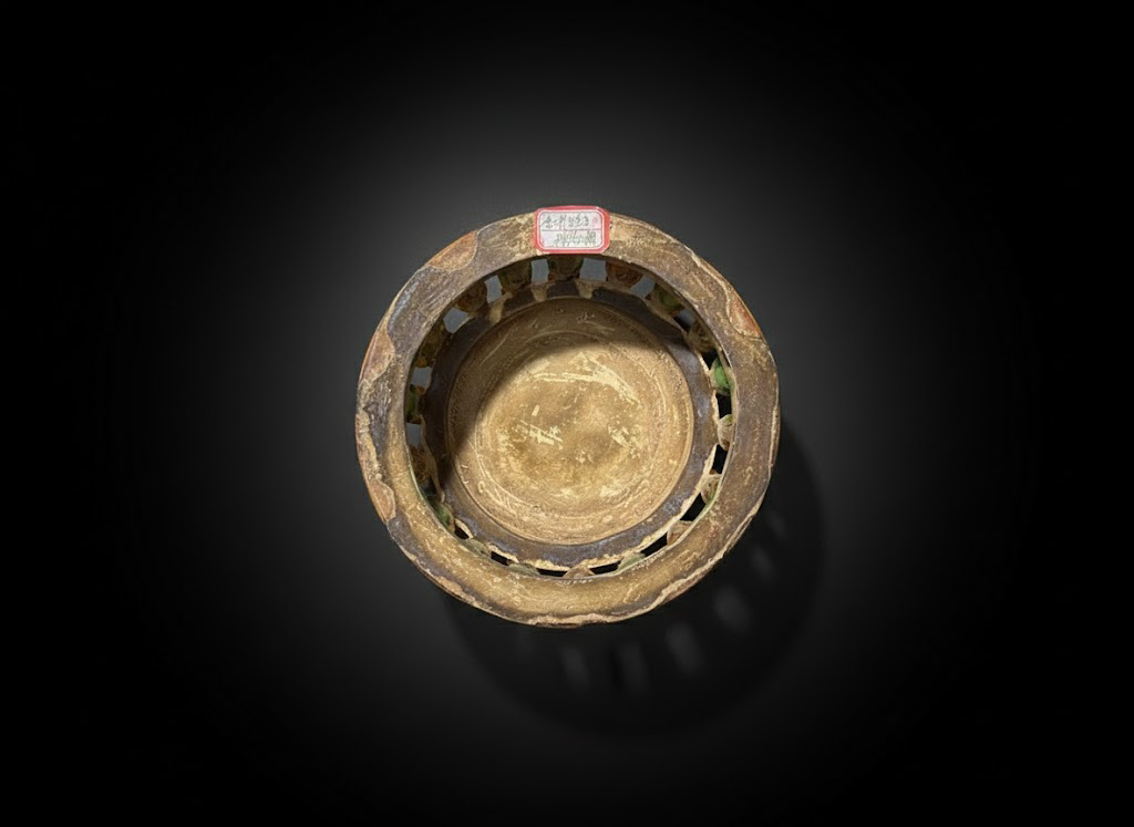 底部露胎呈淡红色,为辽三彩典型胎质。宽厚圈足未施釉,保留了古朴自然的修胎痕迹。釉色流淌处的自然分界,记录着千年前火焰与泥土的温度变化,真实传递出古陶烧制的质朴气息。