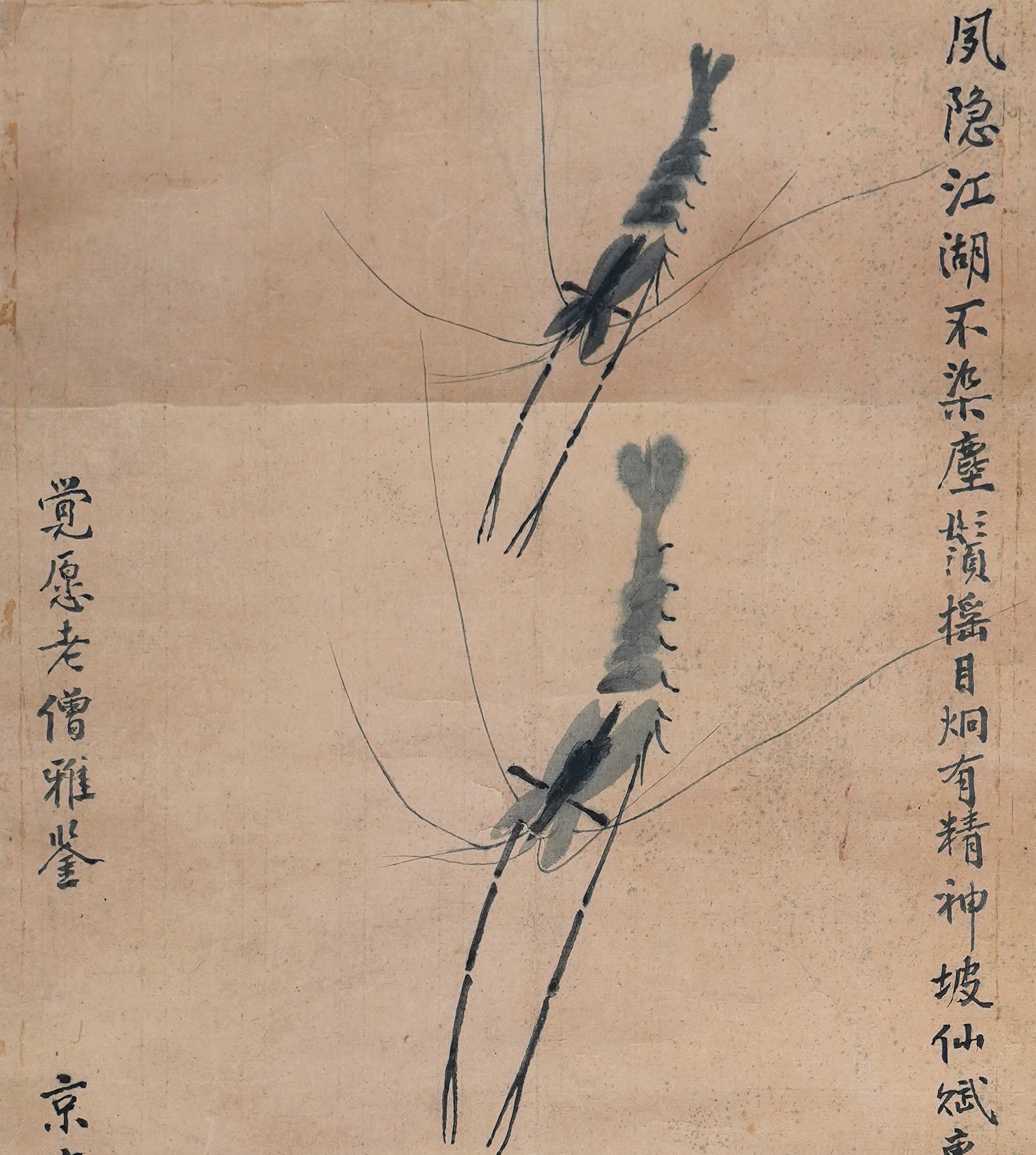 此作为“京广老农泽忠”摹齐派墨虾精品,笔墨灵动传神,深得白石遗韵。虾体晶莹,品相微瑕。