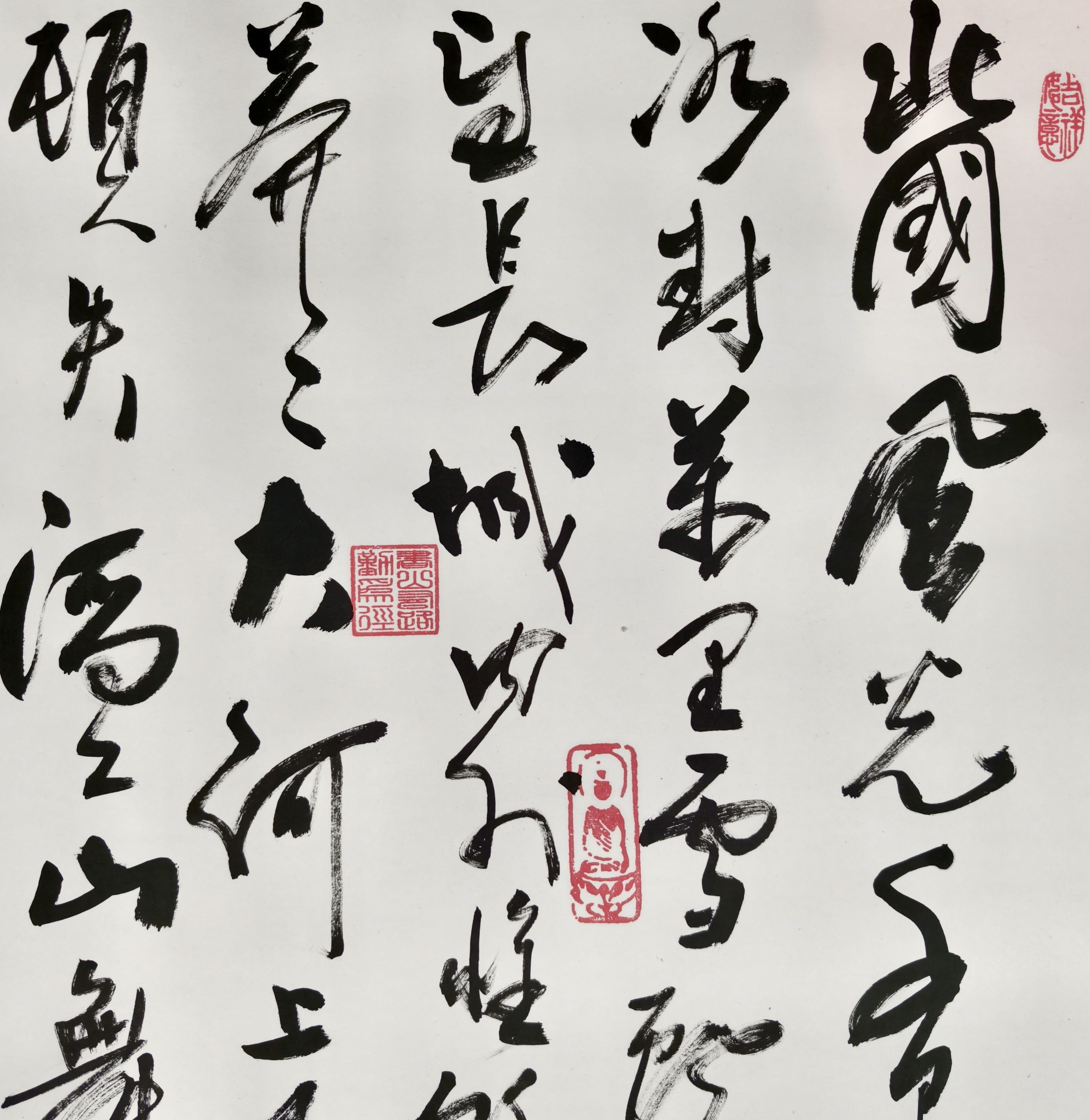 以大篆为主,辅以楷书与行草,构筑出古朴而灵动的画面,展现深厚的书法功底。