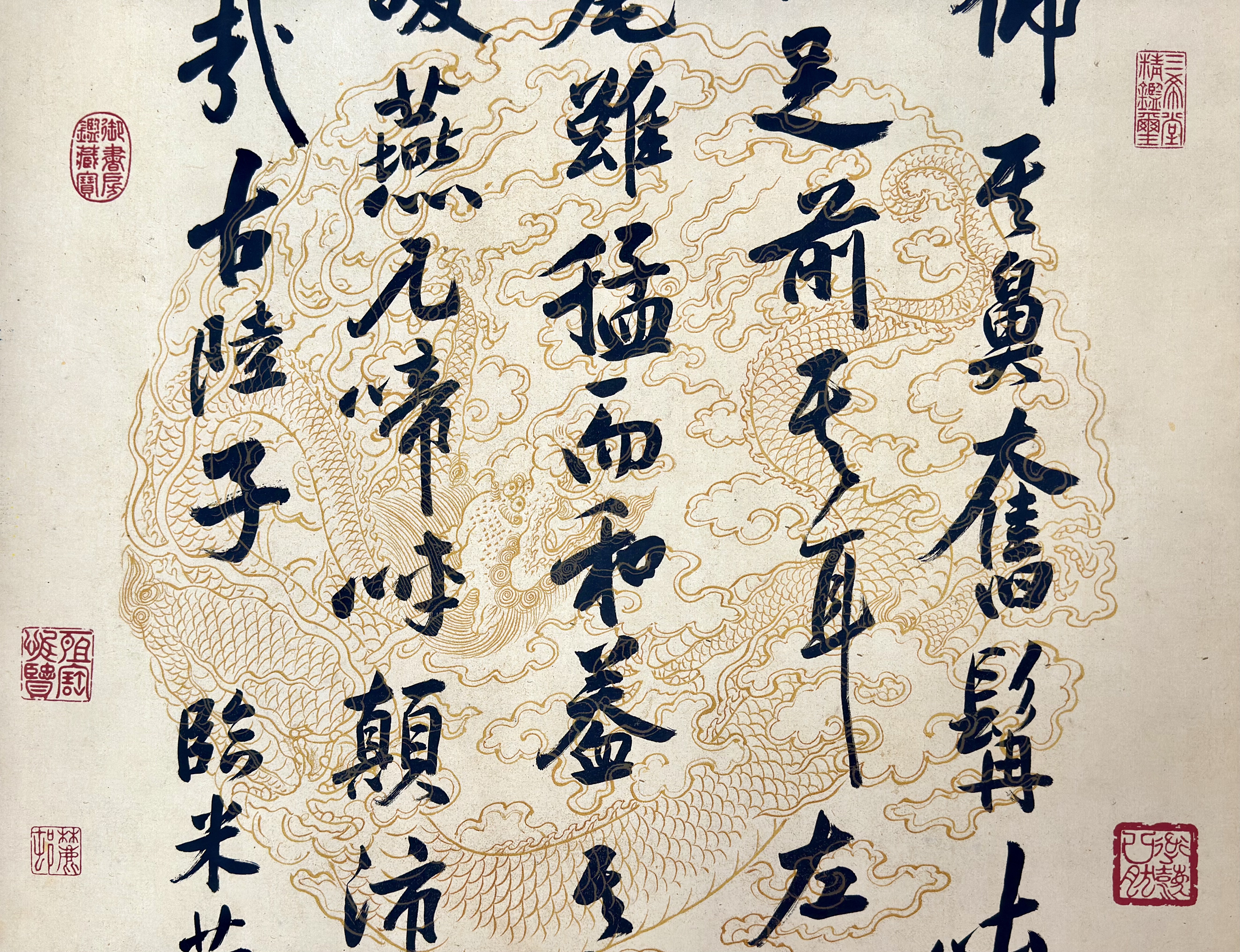 以金笺映墨、以龙纹承韵,展现文人精神与宫廷雅趣的交融之美。