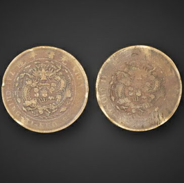 钱币正反图案清晰,包浆自然,蟠龙纹饰生动,体现了晚清机制铸造的精湛工艺。
