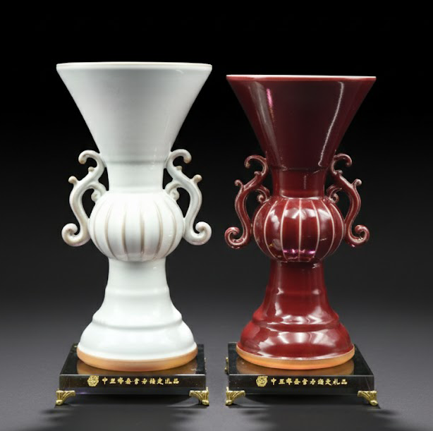 以“和合”为名,寓意和谐共生、礼遇天下。白釉温润如玉,红釉端庄沉稳,造型典雅大方。