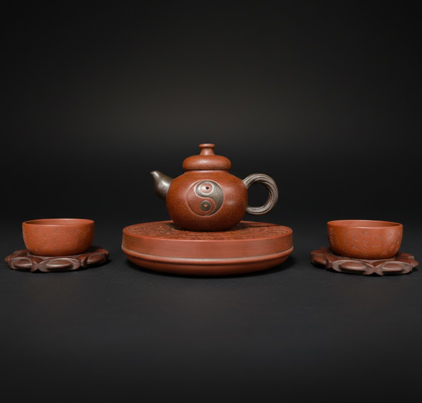以“易经八卦”为灵感,将道家哲思融入紫砂艺术。整套作品造型庄重、纹饰精妙,寓意天地阴阳、乾坤合和。
