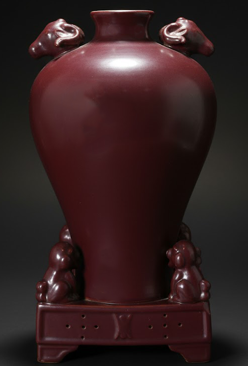 色泽深沉凝润,造型庄重典雅,羊首与瑞兽寓意祥瑞守护,展现御窑精工与皇家气度。