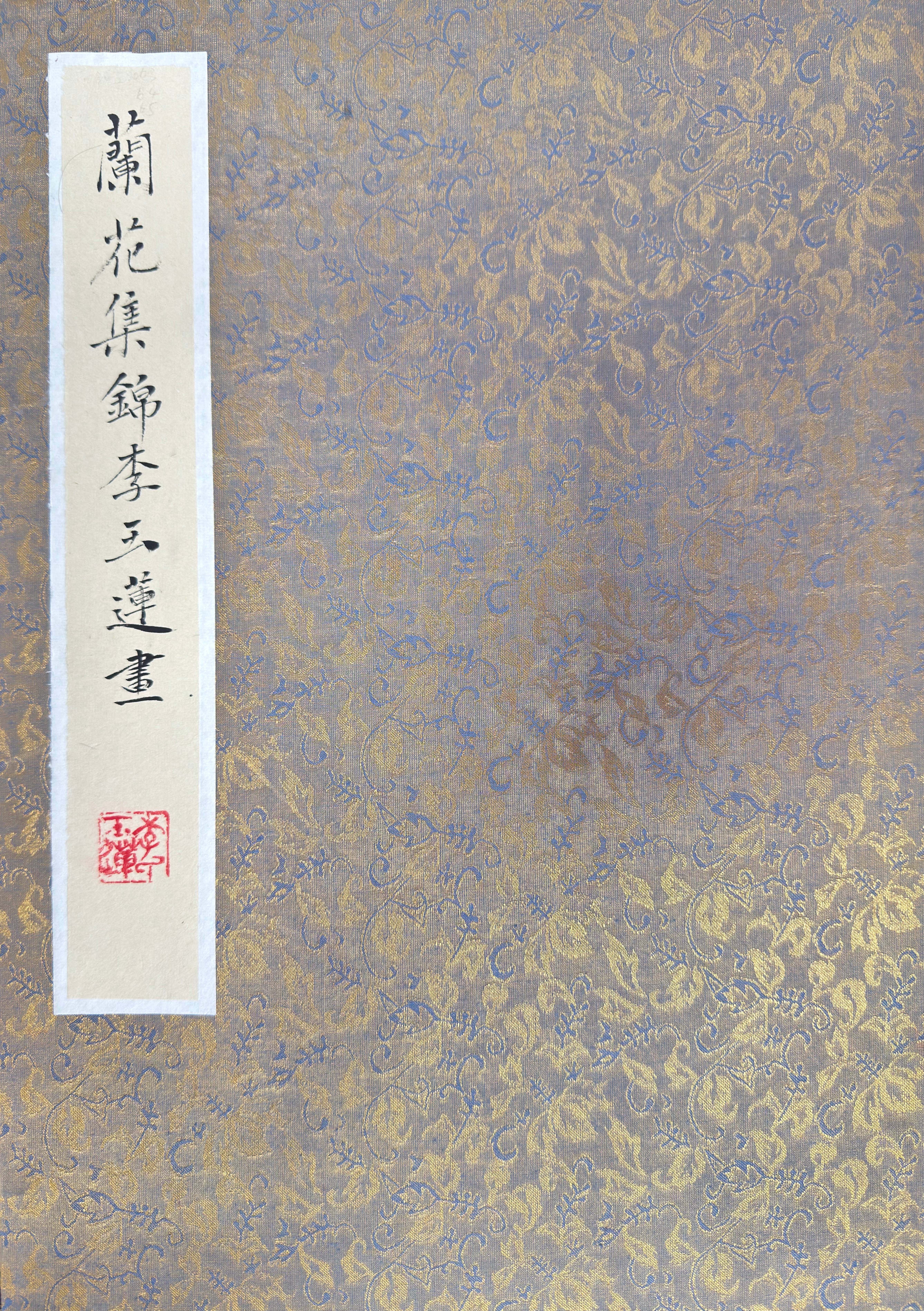 封面采用蓝色织锦装裱,质地典雅。题签书写“兰花集锦 李玉莲画”,下钤白文方印“李玉莲”,整体装潢沉稳端庄,透出浓厚的文人书卷气,也为整卷作品奠定了清雅的基调。
