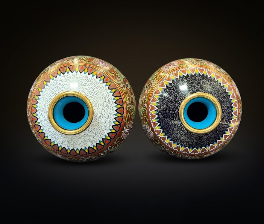 当这样一对景泰蓝对瓶陈设于厅堂之中,既能展现东方工艺的华美与典雅,也为空间增添一份庄重而吉祥的艺术氛围。整件作品在造型、纹饰与工艺之间取得了和谐统一,体现出中国传统工艺在当代语境中的独特魅力。