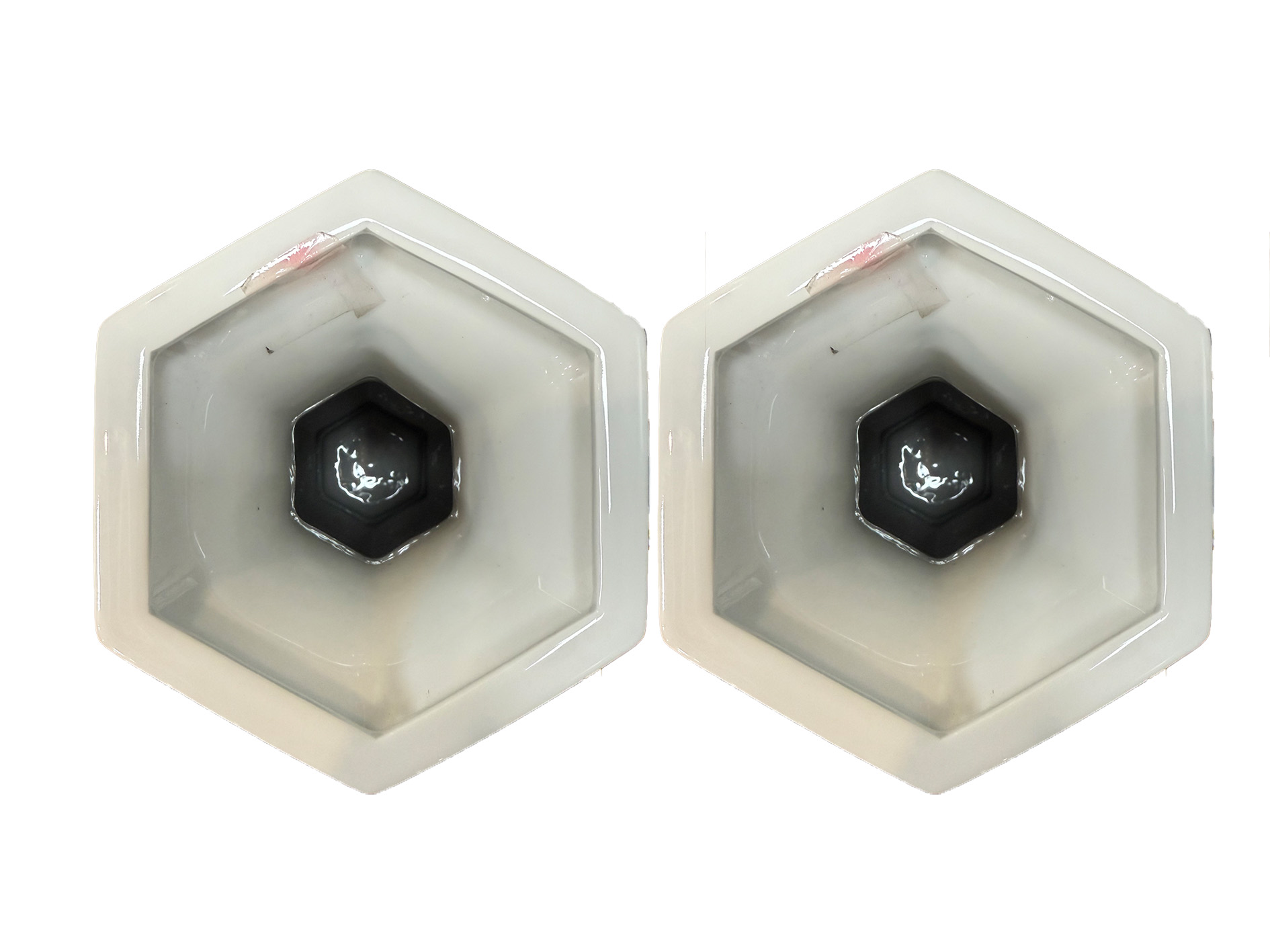 从顶部观之,六方结构比例匀称,转角利落,显示出极高的成型控制能力。口沿描金细致均匀,金线饱满而不浮躁;内壁施釉温润如玉,光泽柔和自然。无论是胎体修整、釉面处理,还是装饰工序,均体现出严谨细致的制作标准,彰显国家级工艺体系下的成熟技艺。
