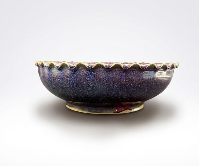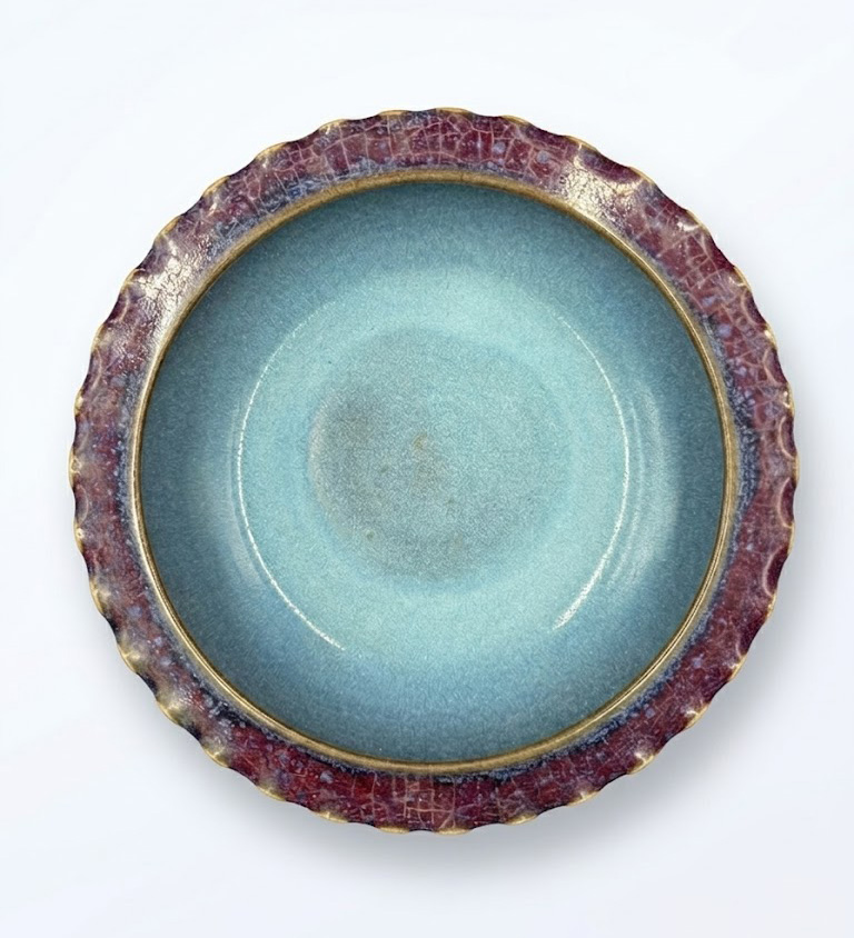 钧窑之美,在于不可预期的变化与含蓄深远的气韵。这件花口洗,将器形之简、釉色之变与工艺之精融为一体,不以繁饰取胜,而在自然与偶然中达至和谐统一,正是宋代审美精神的集中体现。
