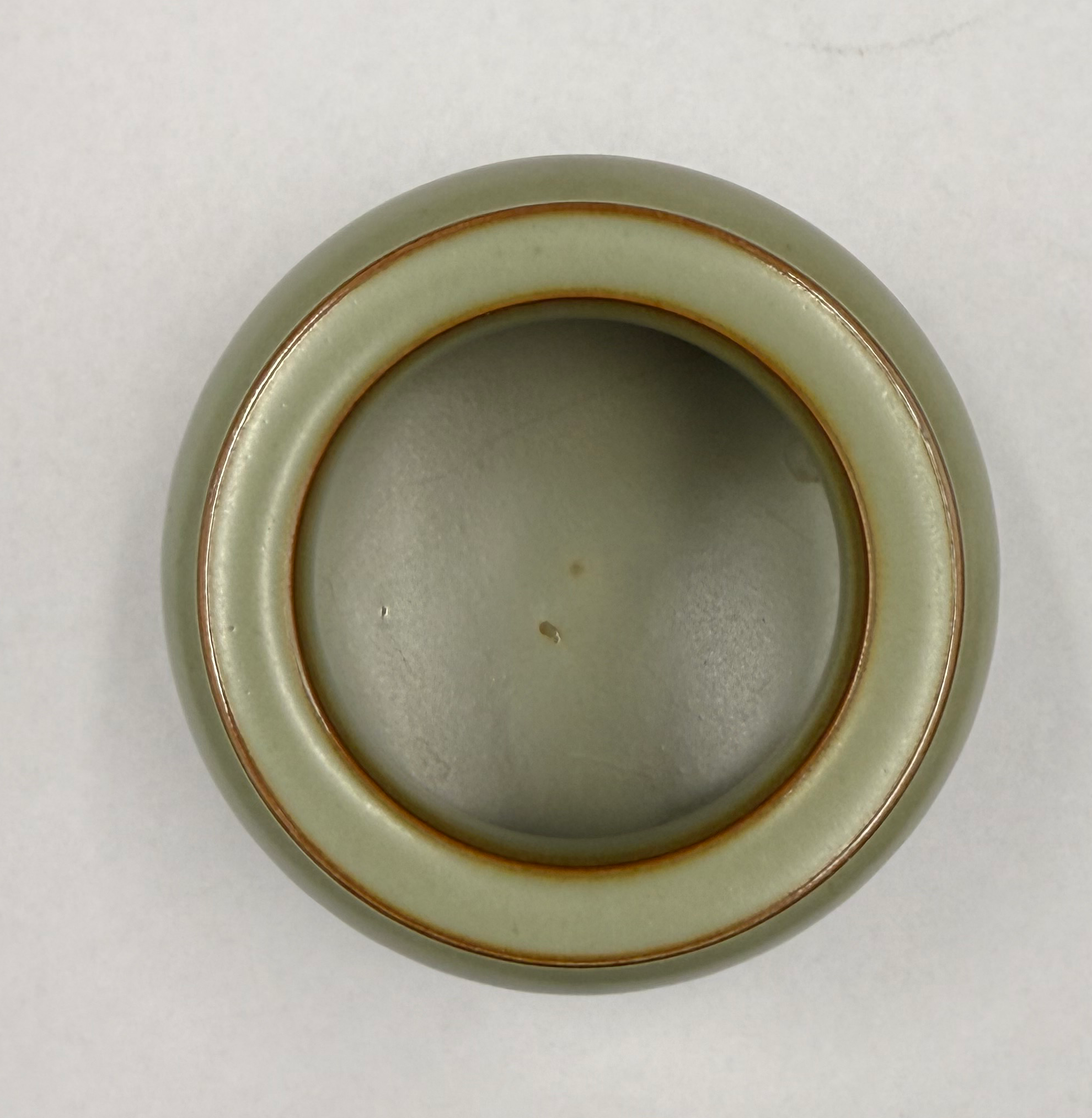 从口沿细部观之,其线条圆润而内敛,收口自然,毫无雕琢之痕。釉层在转折处微显深沉,隐约呈现出典型的“紫口”特征,使整体层次更为丰富。内壁釉面平整光洁,釉质细腻均匀,体现出极高的施釉控制能力与烧造水准,既温润如玉,又含蓄内敛。