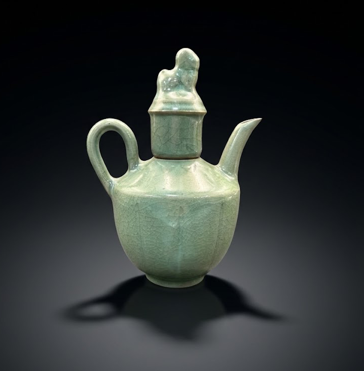 宋代审美,以“简”“静”“雅”为宗。汝窑之器,正是这一审美体系中最为凝练的表达。本件青釉狮钮执壶,体量虽不大,却于细节之间尽显宋瓷风骨,堪称文人气息与宫廷工艺交汇的典型之作。