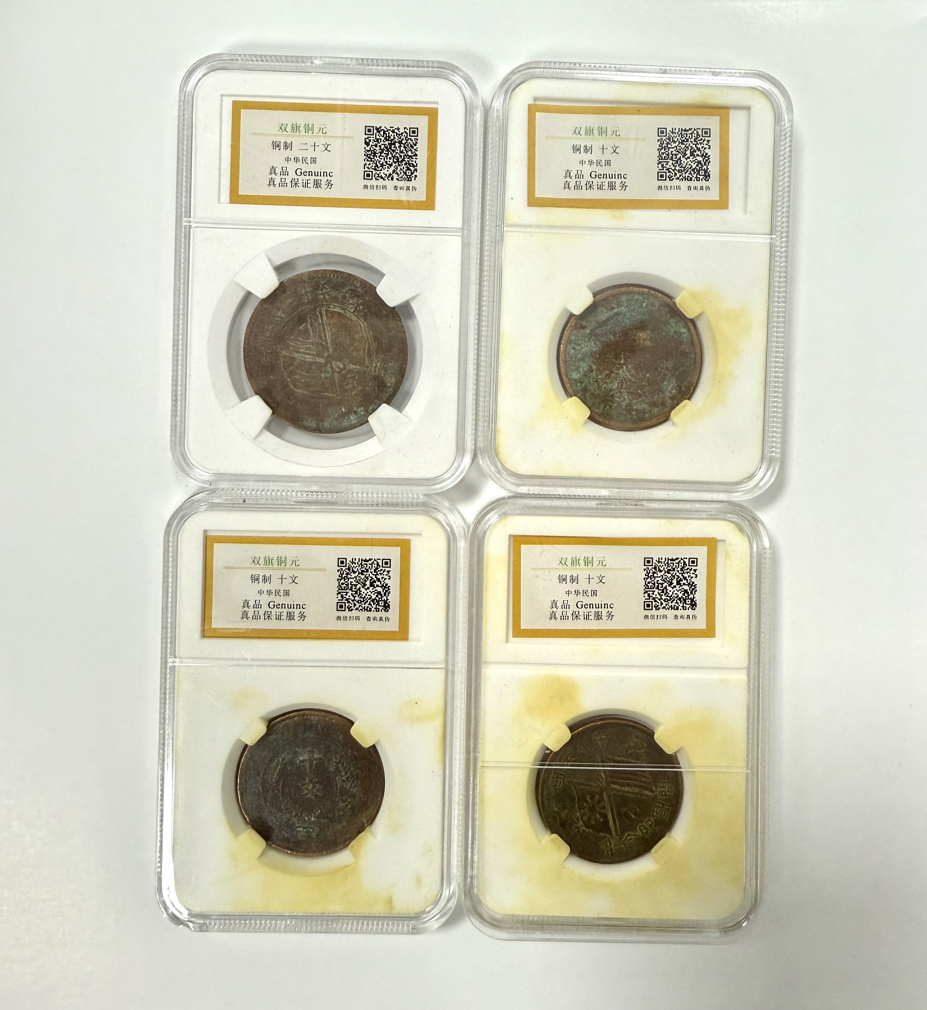这组钱币正反两面图展示了从封建帝制到共和时代的过渡印记。铜元的包浆、纹饰和造型不仅让人赏心悦目,也让我们通过方寸之间感受到那个时代的历史厚重与工艺美学。