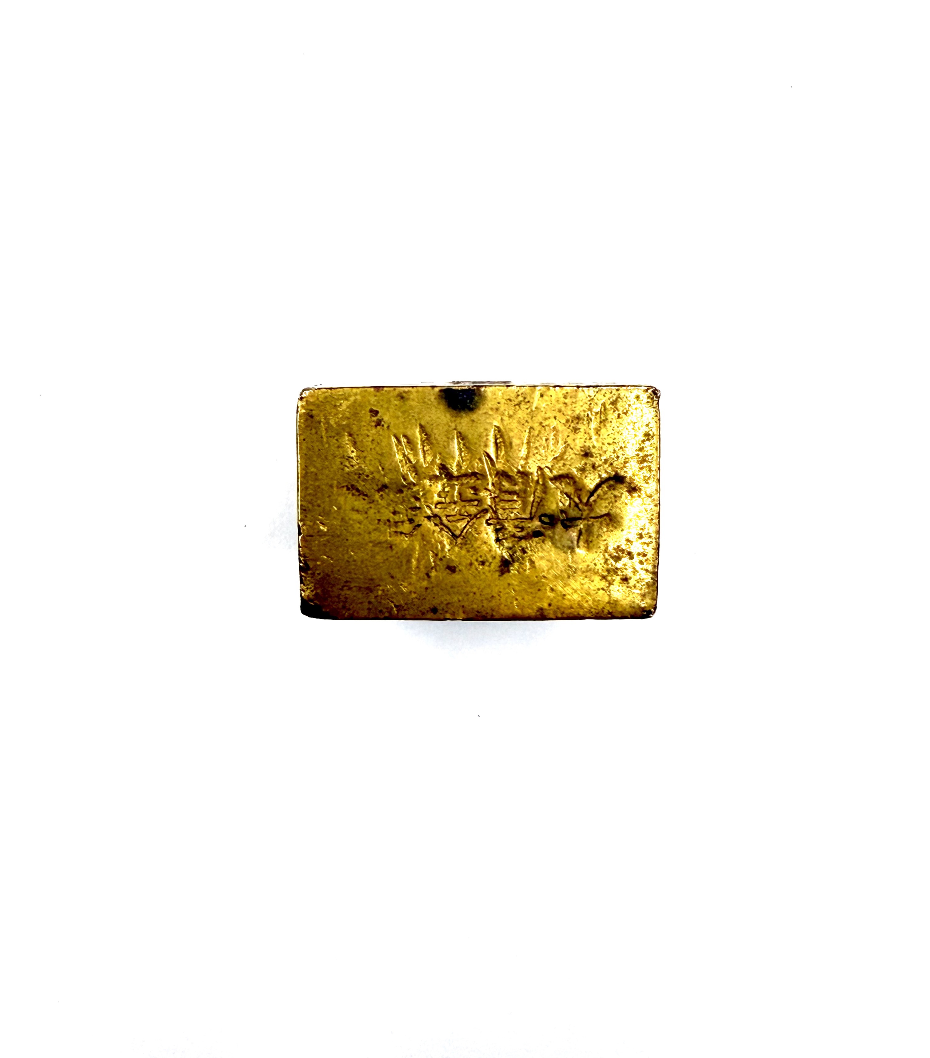 金砖顶面清晰戳印“大清金库”与“上上赤足”,标明出自官方金库,并体现出极高的黄金纯度。印记方正稳重,彰显权威与身份象征。