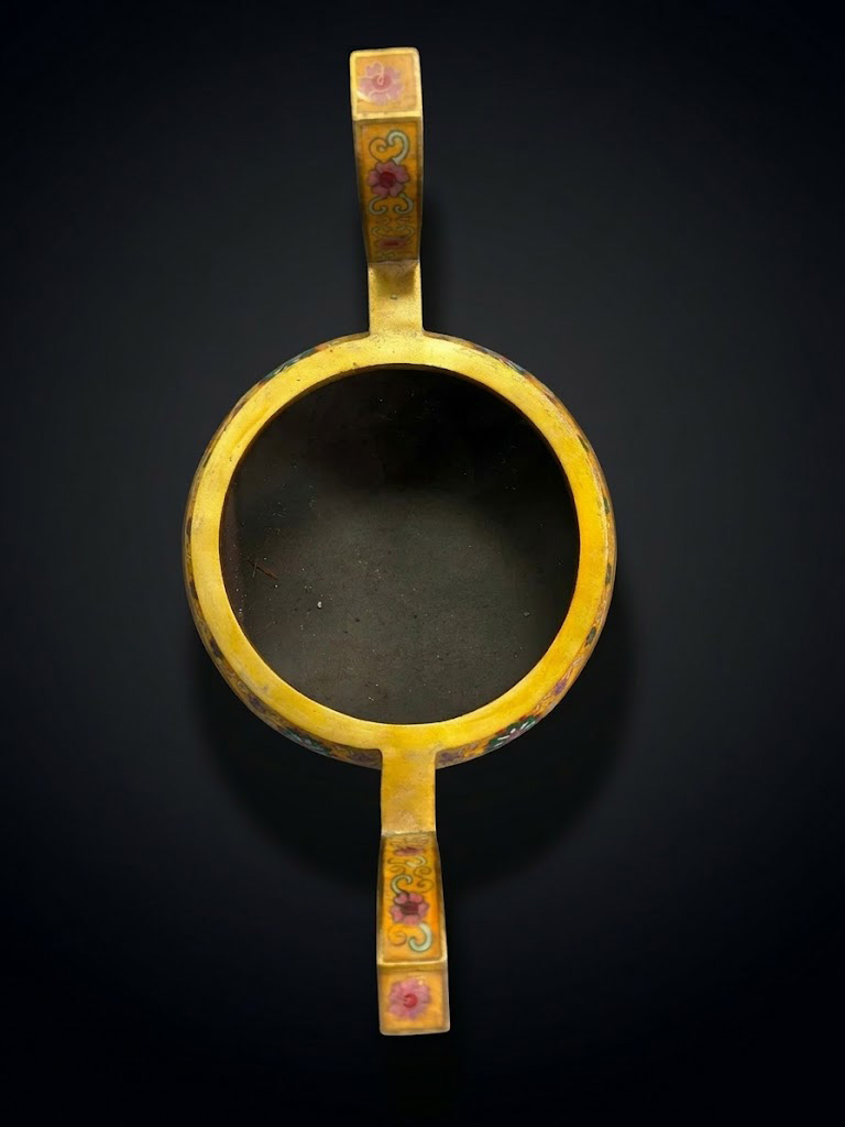 整器取法佛教宝塔形制,上承建筑之制,下化为器用之形,既有宗教象征意义,又体现出皇家审美中对“规制”与“秩序”的高度重视。铜胎为骨,掐丝为线,珐琅为彩,其工艺流程复杂严谨,每一道工序均体现出造办处匠人的精湛技艺。