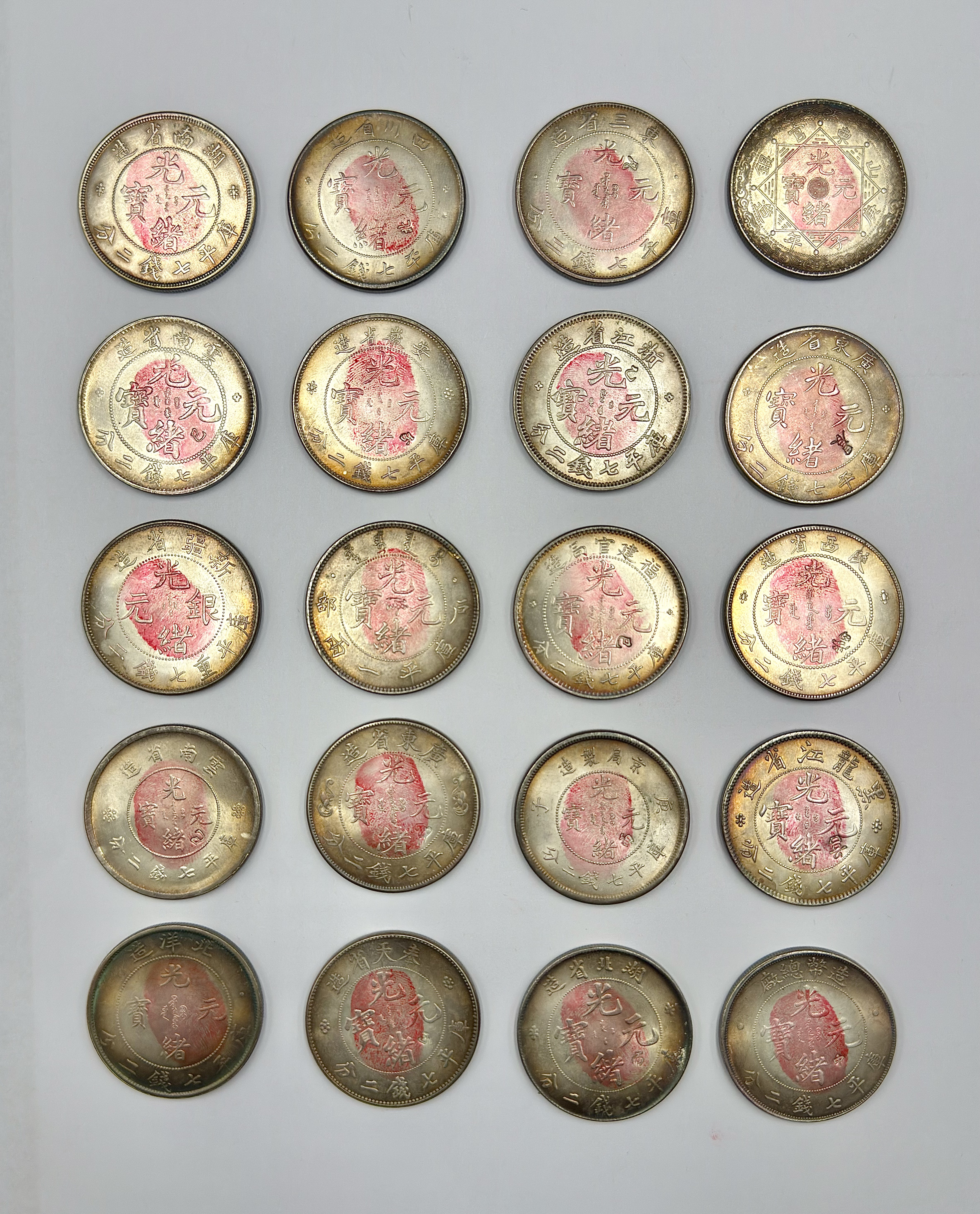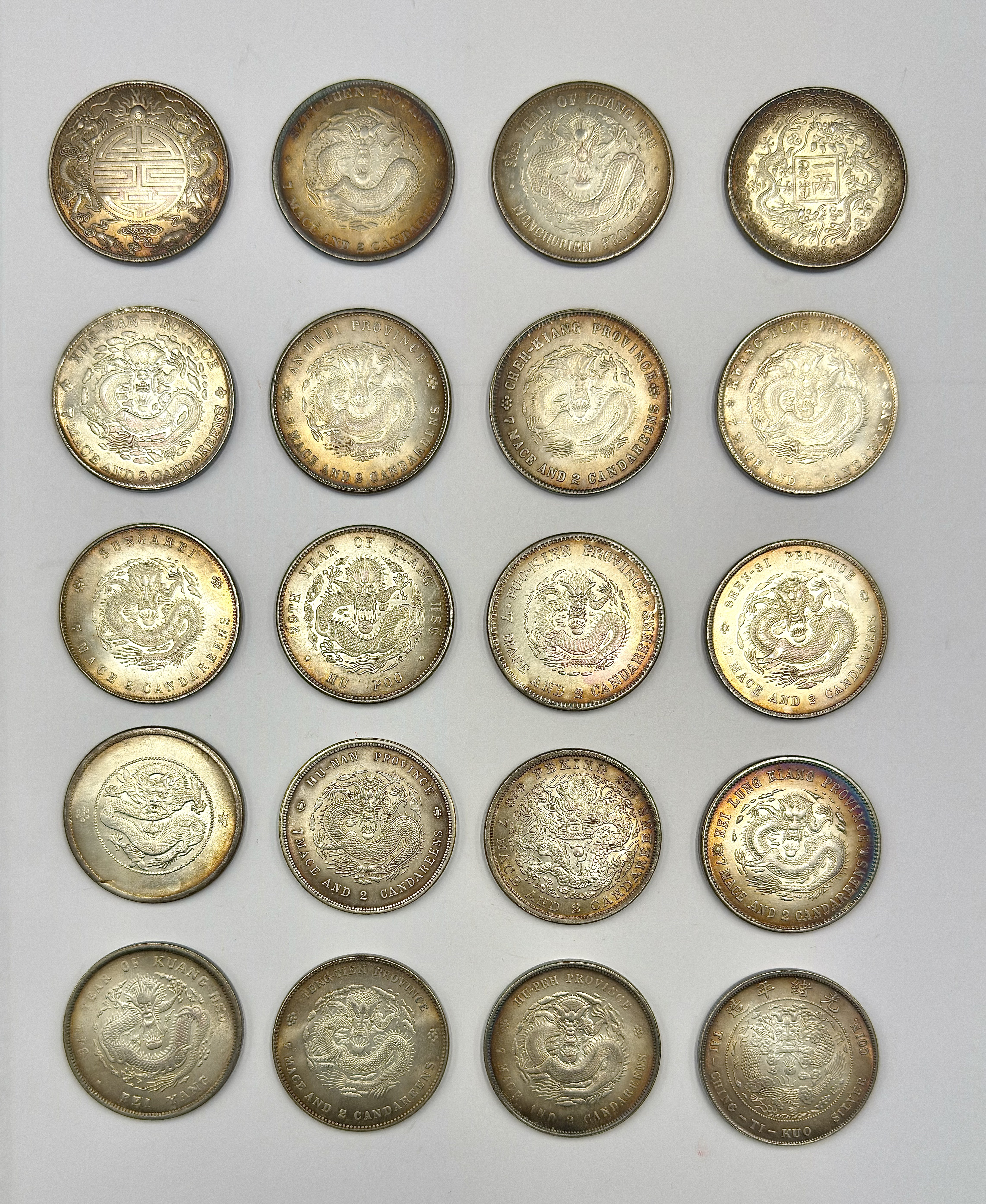 单枚龙洋各有特色,而成组集藏则更具系统价值。这组二十枚银币从地域分布到版式变化,形成完整序列,不仅具备较强的视觉统一性,也构建出一条清晰的晚清货币演变脉络。
