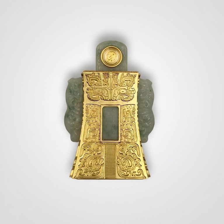 整件作品将材质之美、工艺之精与文化象征融为一体,不仅体现出传统工艺的高度成熟,也彰显出当代对古典审美的再诠释。金与玉的交融,使其在视觉与精神层面均达到统一,既具观赏属性,亦承载礼制与收藏语境中的深层意义。