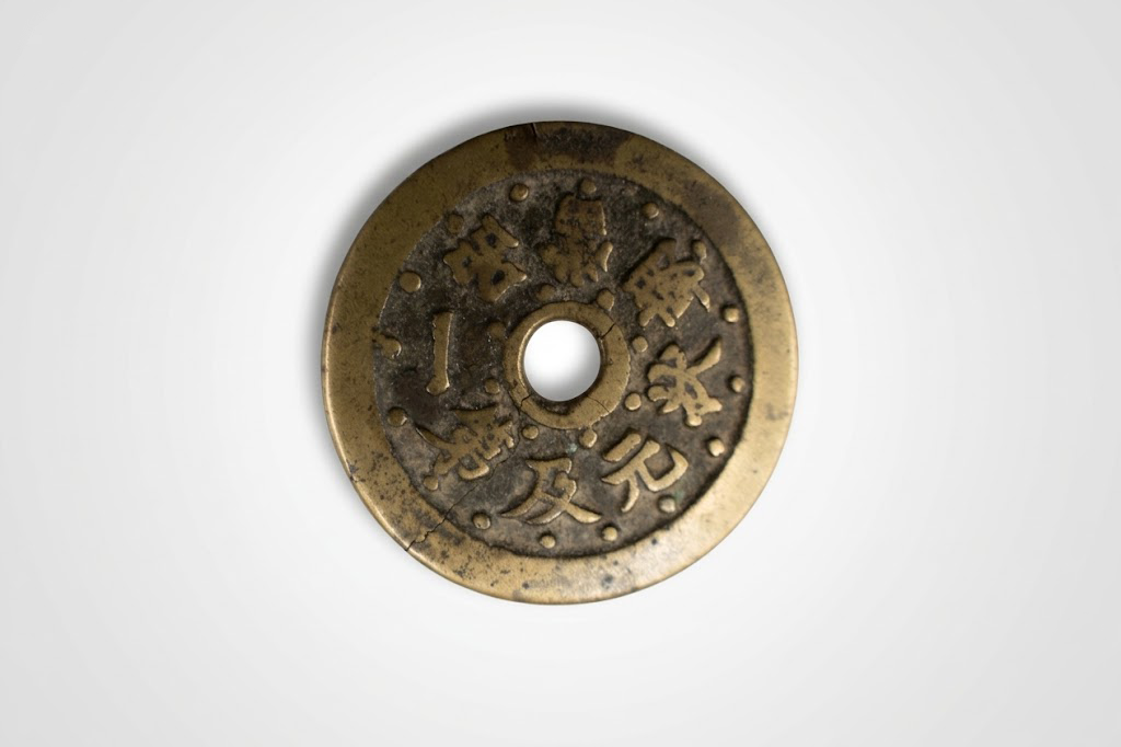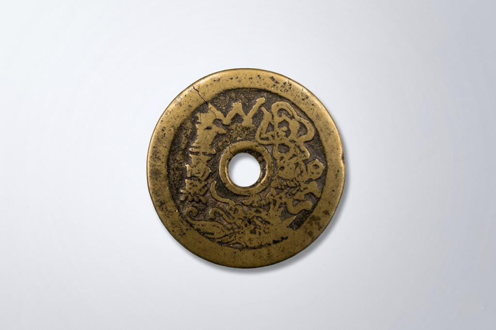 钱币正面铸有“状元及第”四字楷书,布局严谨,笔意端庄浑厚。四字环绕方孔而设,结构均衡,外缘辅以连珠纹装饰,使整体更显庄重典雅。“状元及第”象征科举考试中拔得头筹,是古代士人毕生追求的最高荣誉,亦承载着家庭与社会对学子功名成就的殷切期望。