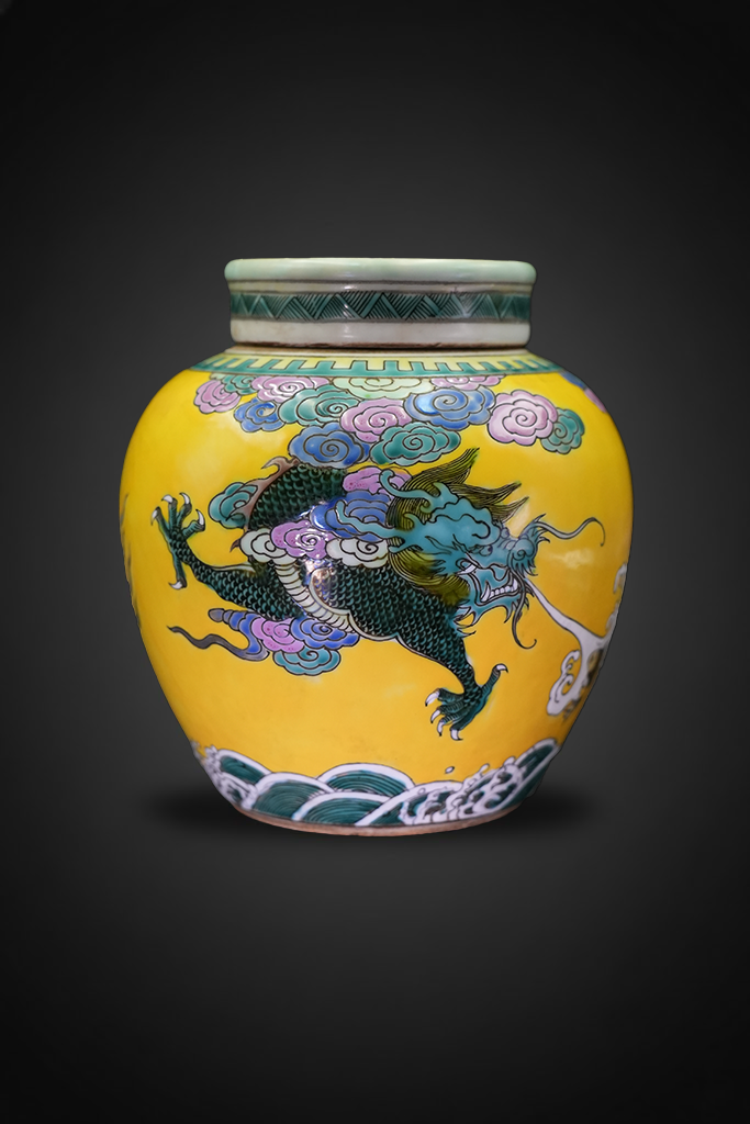 清代黄地粉彩龙纹盖罐 —— 祥云瑞气,龙腾盛世