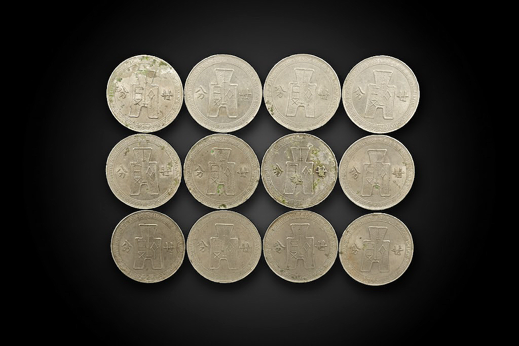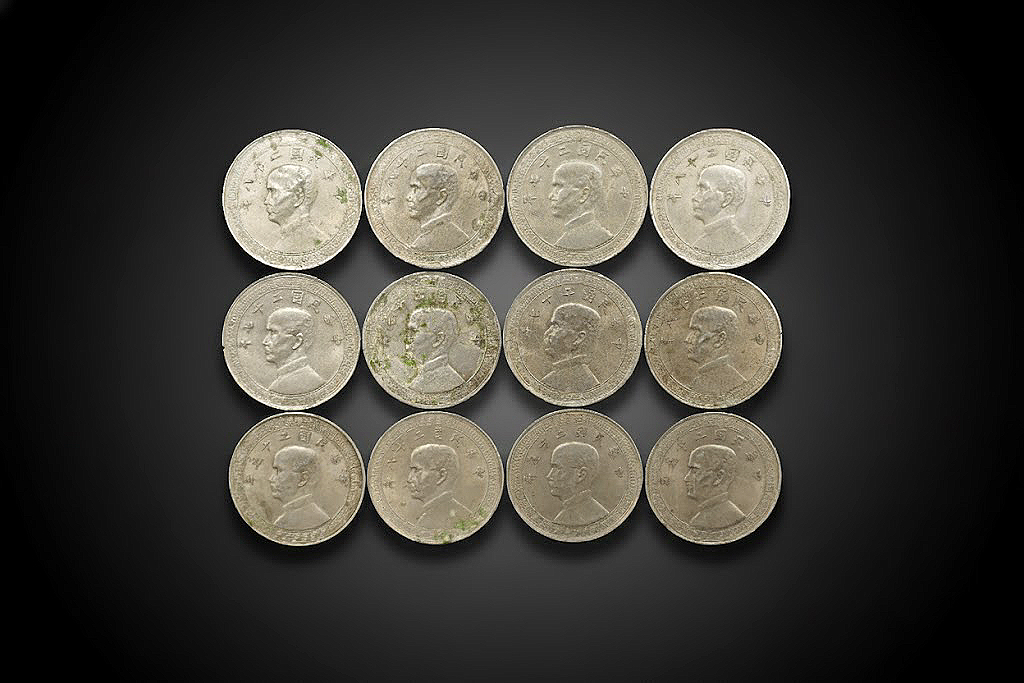 这组藏品为民国时期孙小头镍币共 12 枚,直径约 2.4 厘米,总重 71.04 克。此类硬币铸于民国年间,币面中央刻有孙中山先生侧面肖像,因头像较小,被收藏界称为“孙小头”。采用镍质材料铸造,使其在当时众多银质或铜质流通币中显得独具特色。