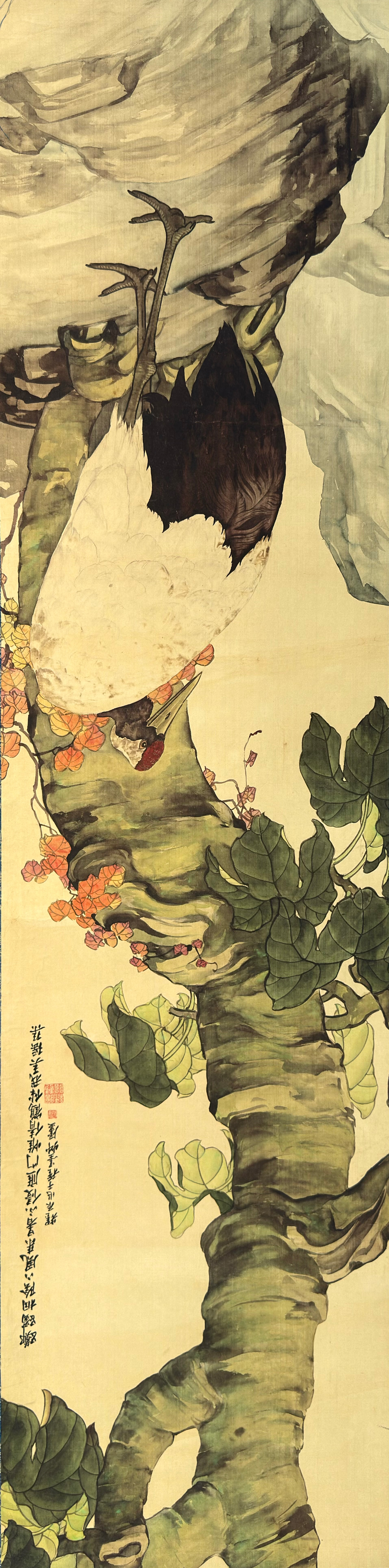 刘奎龄(1885—1967),字耀辰,号蝶庵,天津人,是近现代中国画坛上独树一帜的花鸟与动物画大师。他以工笔重彩著称,善于将中国传统工笔画的精细与西洋写实的光影结合,创造出既严谨又生动的艺术风格,被誉为“近世动物画第一人”。