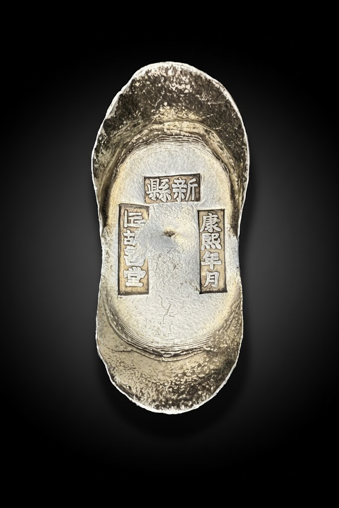 这件“新县·胡善堂”银锭是清代康熙时期地方银业活动的真实写照,凝聚了当时的经济制度与工艺水平。
